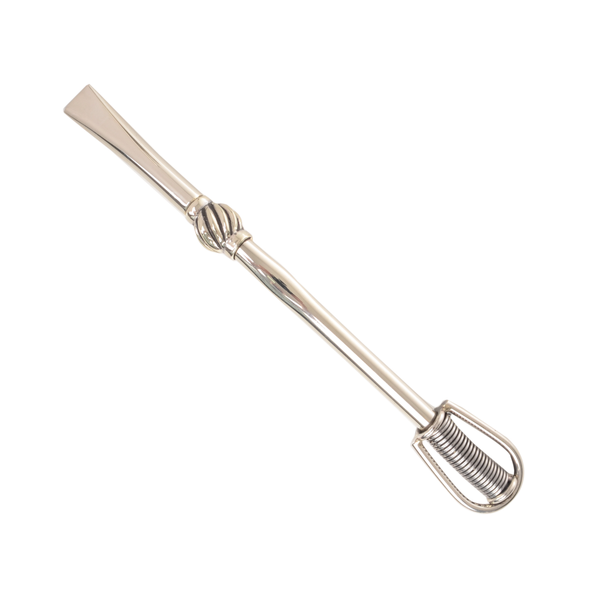 Half-curved german silver straw with detachable spring filter. Handmade with noble materials by expert artisans that live in remote Argentina